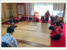 今日は、年長さんが2回目のお茶のお稽古に参加しました。