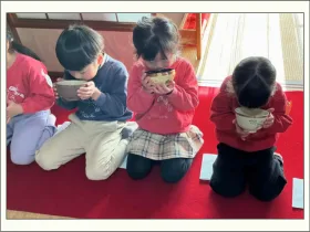 前回のお稽古で覚えた「お先に」「大変おいしゅうございます」を思い出し、口にする子もいました。