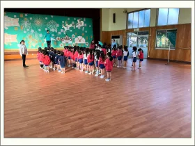 ホールの床が新しくなりました 2026年1月20日 最終更新日時 : 2026年1月20日 グリーンヒル幼稚園12月中旬から始まったホールの床の張り替え工事が終わりました。工事後、子ども達が初めてホールに入ると、「きれい!」「茶色い!」など様々な感想を口にしていました。中には、手で触って感触を確かめている子もいました。以前に比べ、ホールでのかけ足中に転んでしまう子も減り、走りやすく、またホール全体の印象が明るくなりました。行事等でご来園の際は、是非ホールの様子もご覧下さい。※画像1枚目:旧ホール 画像2・3枚目:新ホール