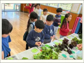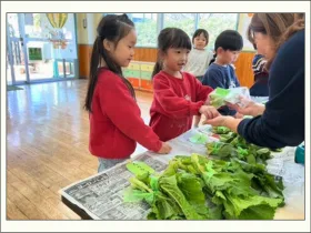 昨日、子ども達と一緒に畑の野菜を収穫しました。今回は、珍しい葉物野菜があり、「スイスチャード」「マーシュ」など初めて名前を聞く野菜もありました。